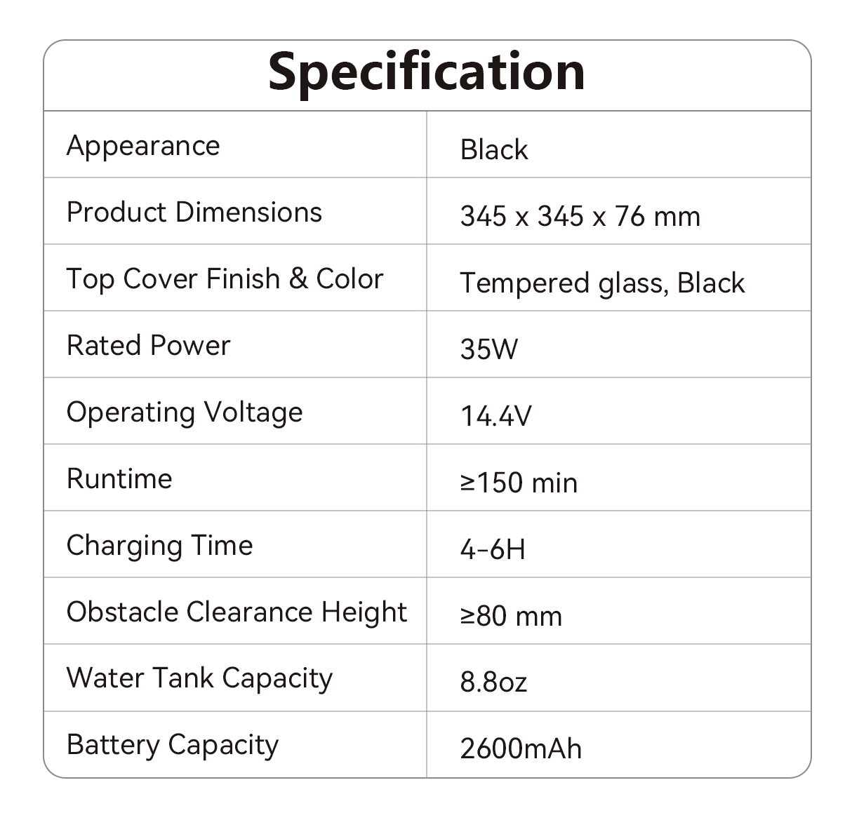 Bionic Algorithm—Ensures high-precision cleaning, navigating precisely without deviation. Integrated