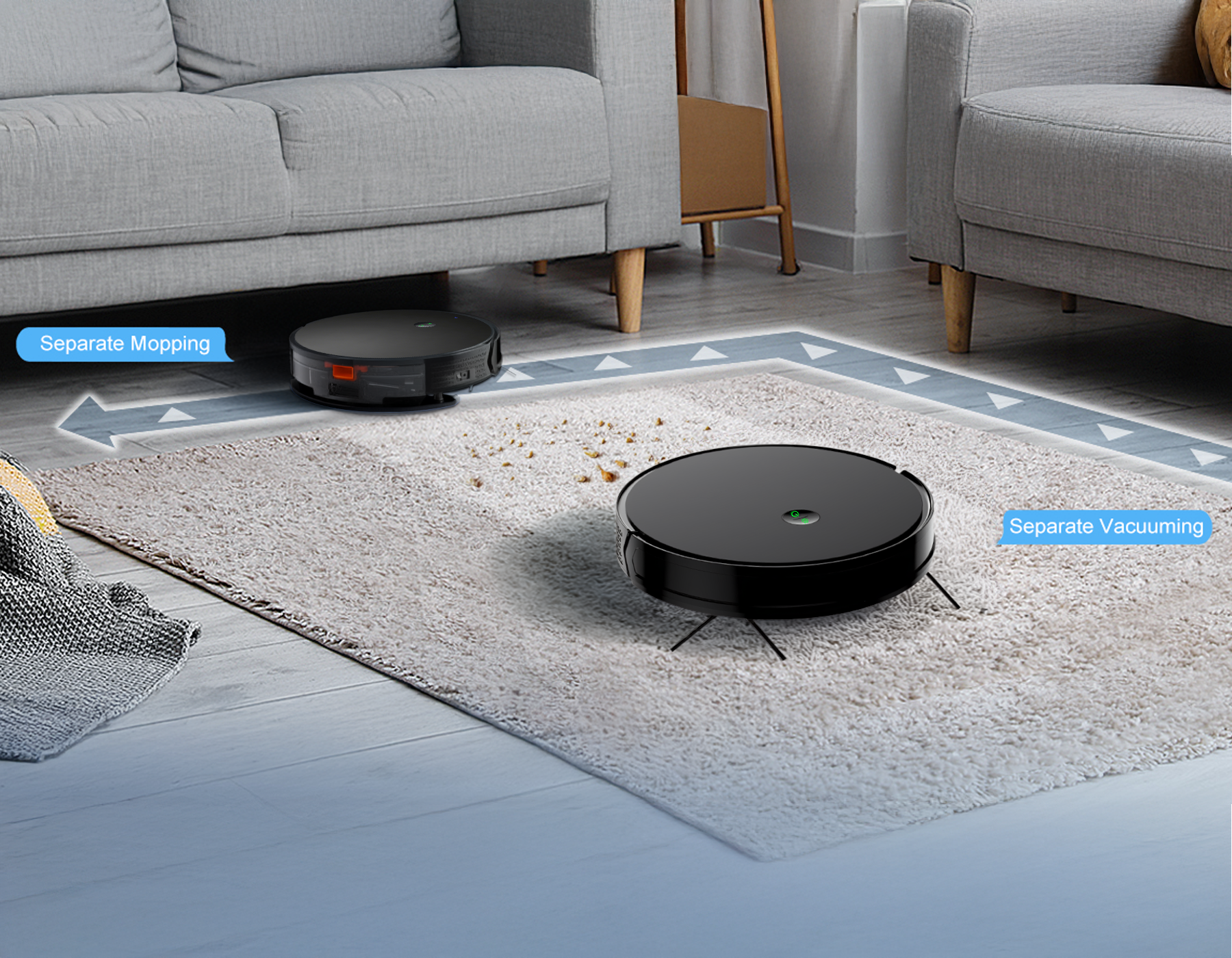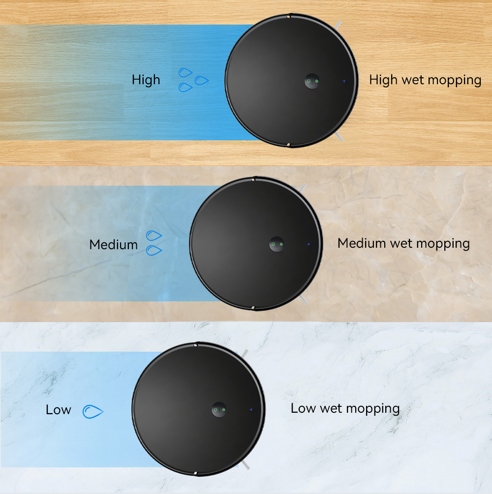 Every home is different, and so are your cleaning needs. This robot vacuum offers multiple adjustment modes, allowing you to customize its performance. Choose from different suction levels, brush speeds, or cleaning patterns to perfectly match your floor type and mess level, ensuring an optimized clean every time.