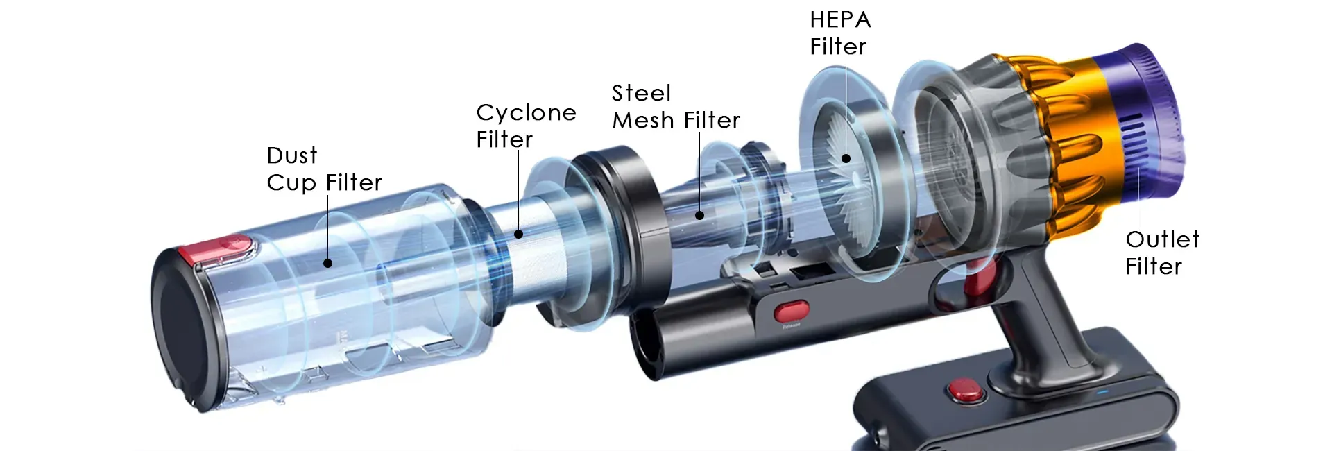 The Aetheros Vacuum Cleaner features an extended battery life that allows for uninterrupted cleaning sessions. Depending on the power setting, you can expect several hours of cleaning time on a full charge, in powermode up to 30 minutes.