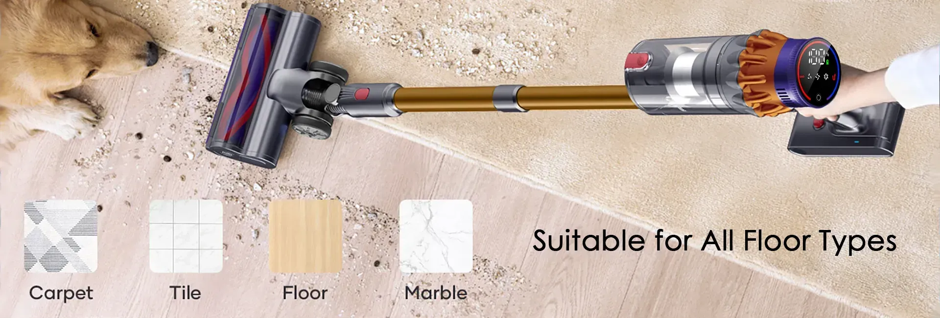 Yes, the Aetheros Vacuum Cleaner is designed to clean a variety of surfaces, including hardwood floors, carpets, and tiles. Its versatile performance ensures effective cleaning on all types of flooring.